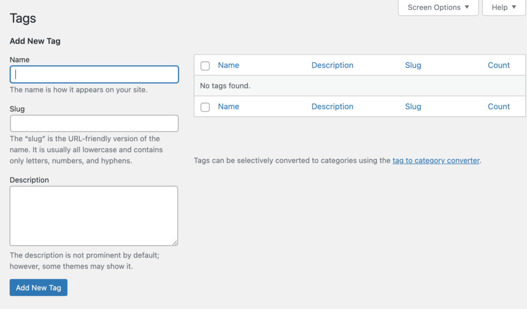 Further Reading: https://wordpress.org/support/article/posts-tags-screen/